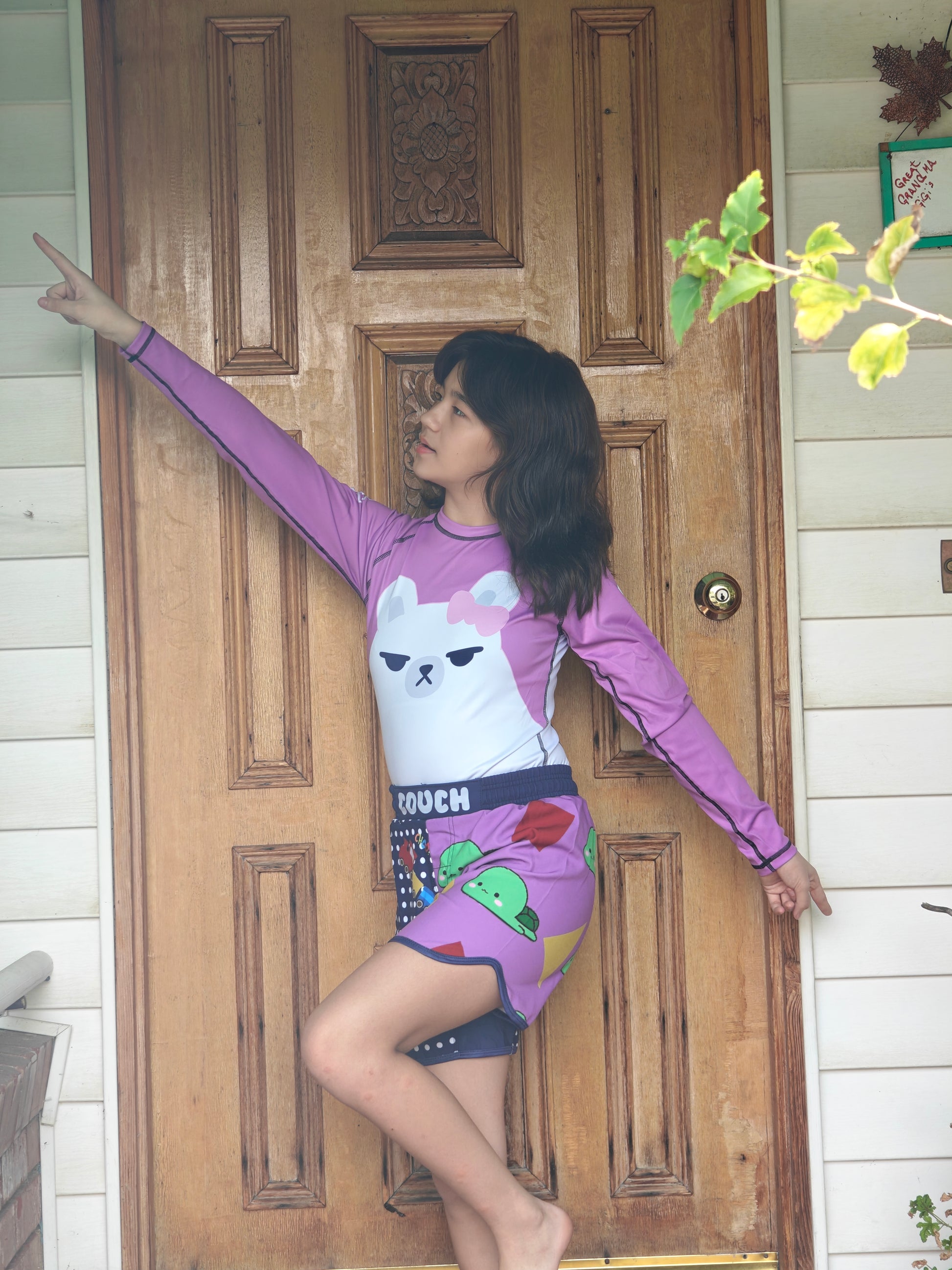 Enjoy the Demon Hunter Girls pajamas mixed together in a "We Want Couch" fusion. The duck on the sleeve makes a cute appearance in the movie. Can you find it? Guess you'll have to watch it again.